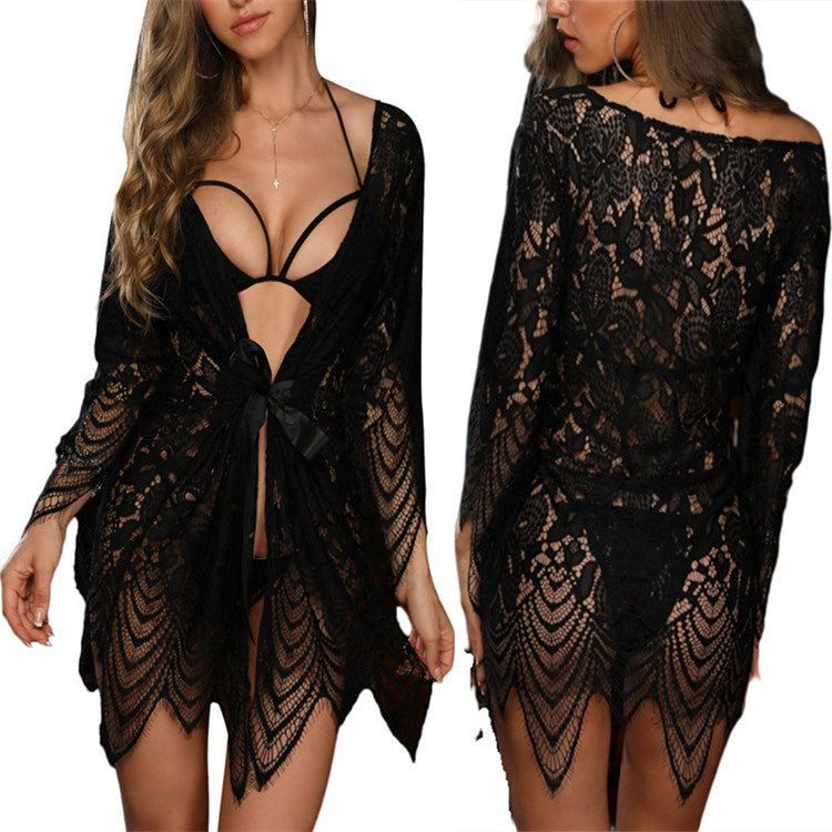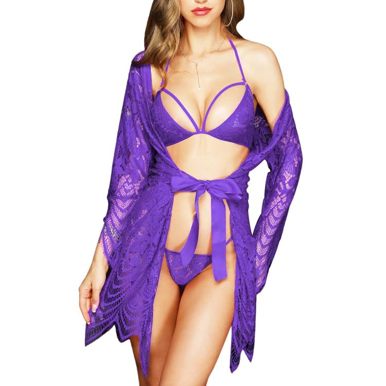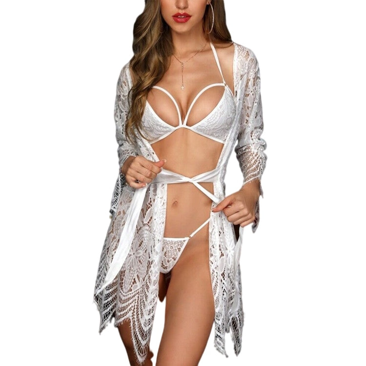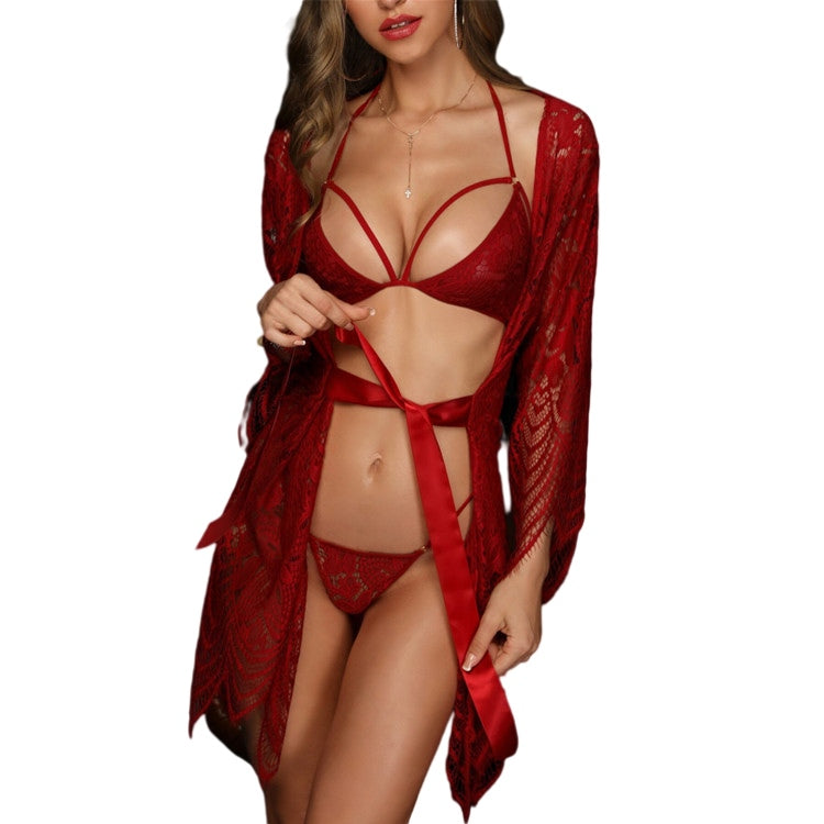 Boho Sheer 3-Piece Lingerie Set - Open-Bust Robe & Sexy Bralette
